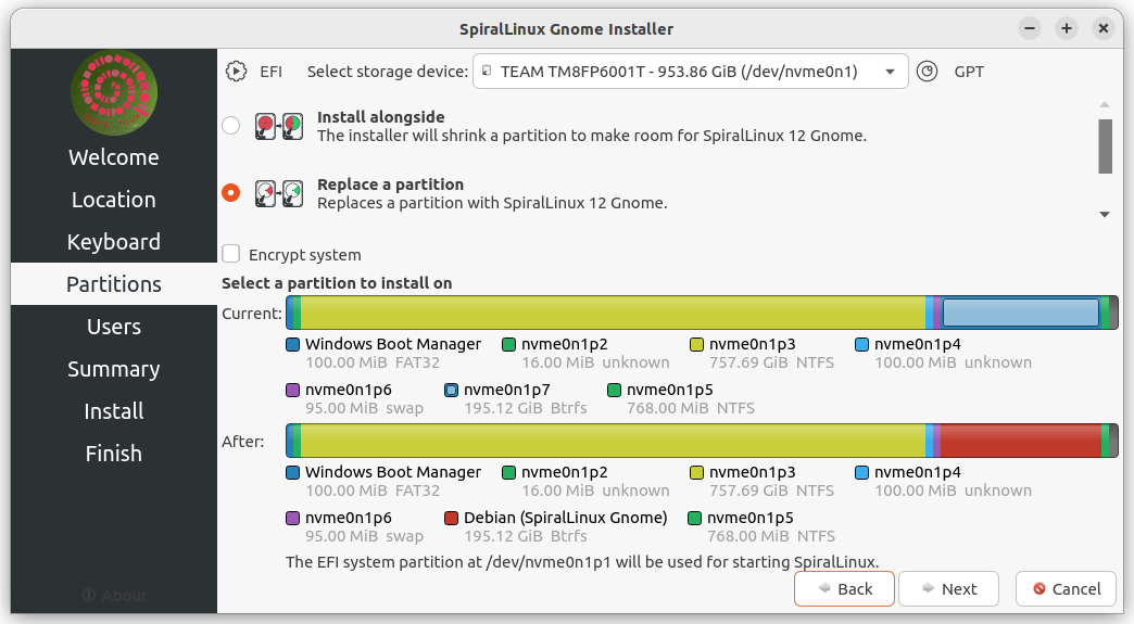 "Great question. Debian does an excellent job of providing the fundamentals needed for a highly reliable and flexible operating system. However, it is a sprawling and impersonal organization that does not focus on being friendly for the end-user. So a plethora of Debian-based distributions have arisen with the objective of adding a layer of polish, albeit with varying degrees of success. Most of these efforts depend on a single developer or a small group of developers with far fewer resources than the official Debian project. Many such projects create custom packages and supplemental package repositories that will cease to exist and leave their users stranded in the event that the project ever ceases to function. SpiralLinux, on the other hand, has been carefully designed to be completely dependent on the extensive development resources and excellent package infrastructure of the upstream Debian project. Debian itself provides a base system that is capable of being very user-friendly when properly configured. This is where SpiralLinux comes into play. Great effort has been expended in polishing the SpiralLinux default configuration for all the major desktop environments using the packages and mechanisms that Debian itself provides. So in effect, a SpiralLinux installation is actually a legitimate Debian installation that can be infinitely upgraded from the official Debian repositories while retaining its unique SpiralLinux configuration."